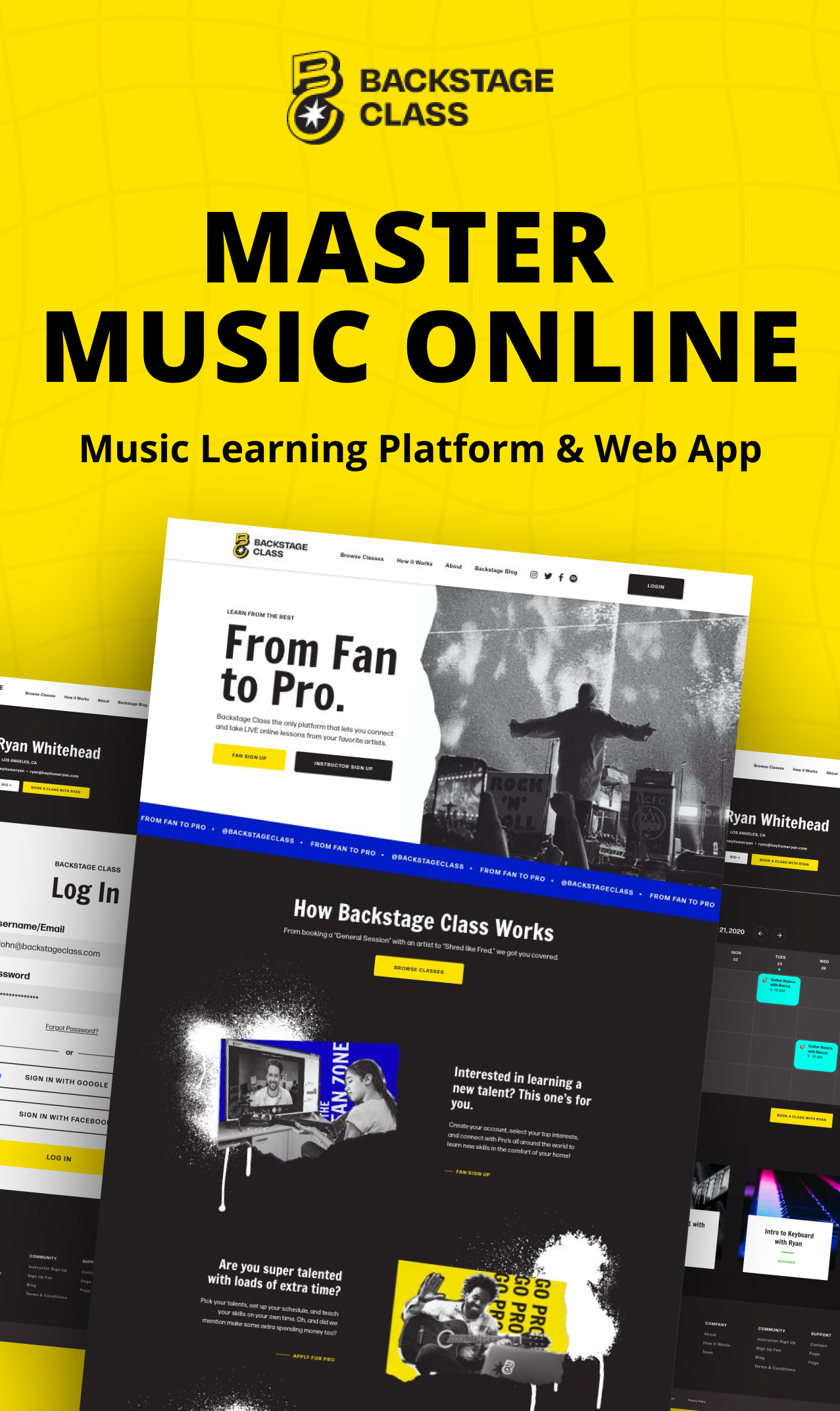 Backstage Class is an interactive learning platform that connects music enthusiasts with their favorite artists through live lessons, real-time chats, and on-demand courses. We built the full system—including artist and student profiles, a scheduling and booking calendar, Twilio-powered live video and chat, a secure payment flow with escrow, and a scalable NextJS + AWS architecture—wrapped in a clean, intuitive UX/UI. The result is a seamless, engaging platform that empowers artists to teach and earn while giving students an accessible, high-quality way to learn music anytime.