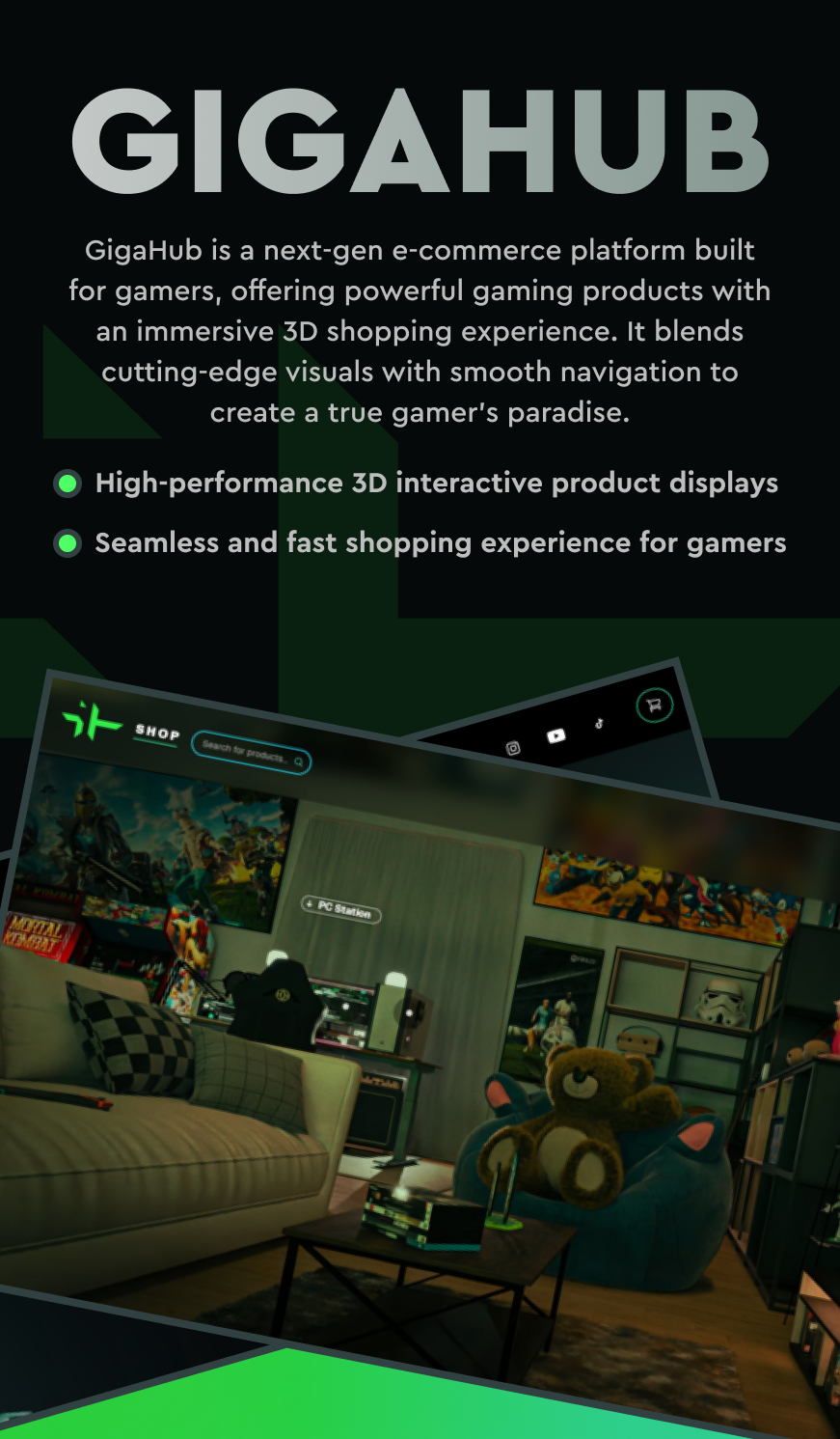 GigaHub — The immersive 3D gaming store that feels like a level of its own.