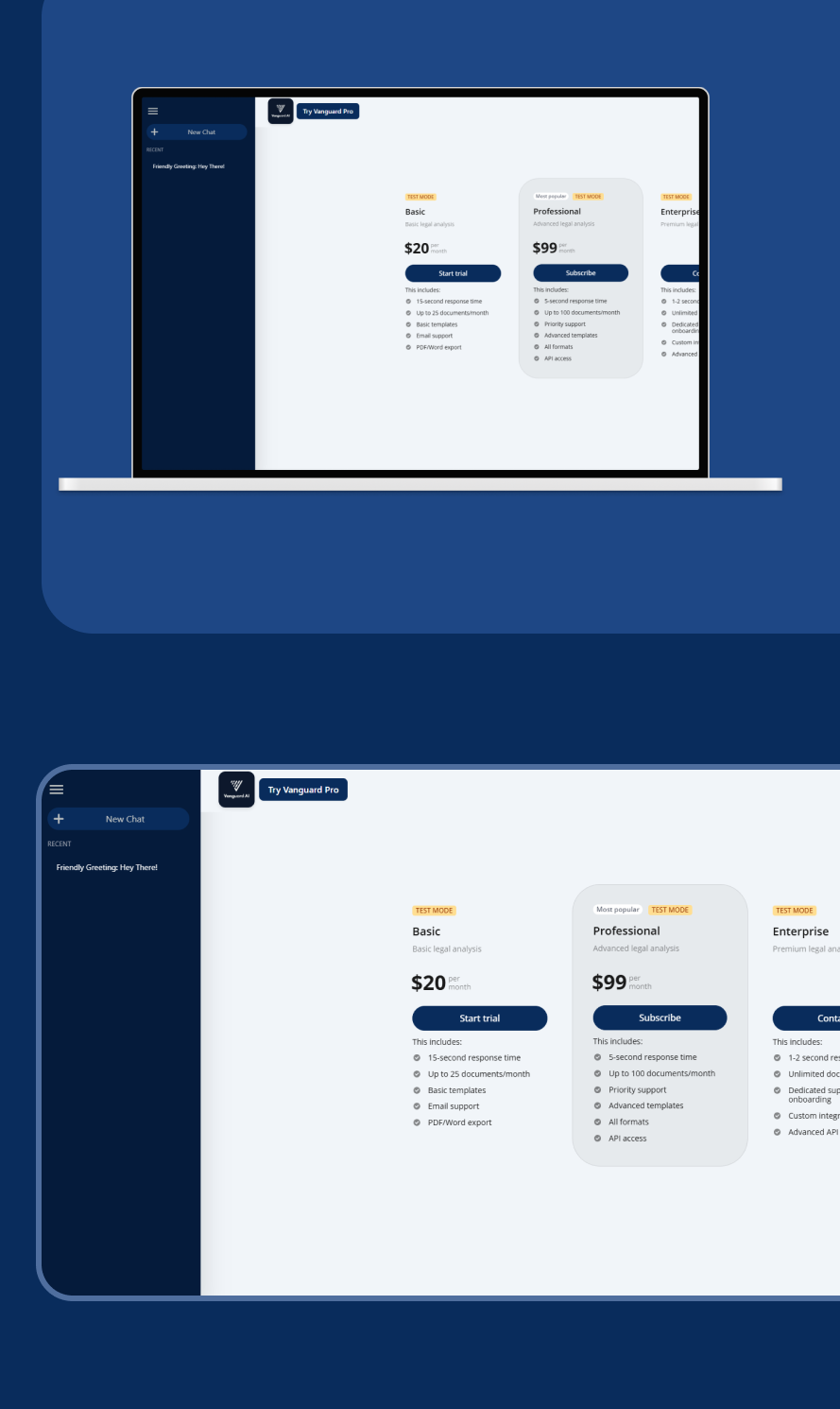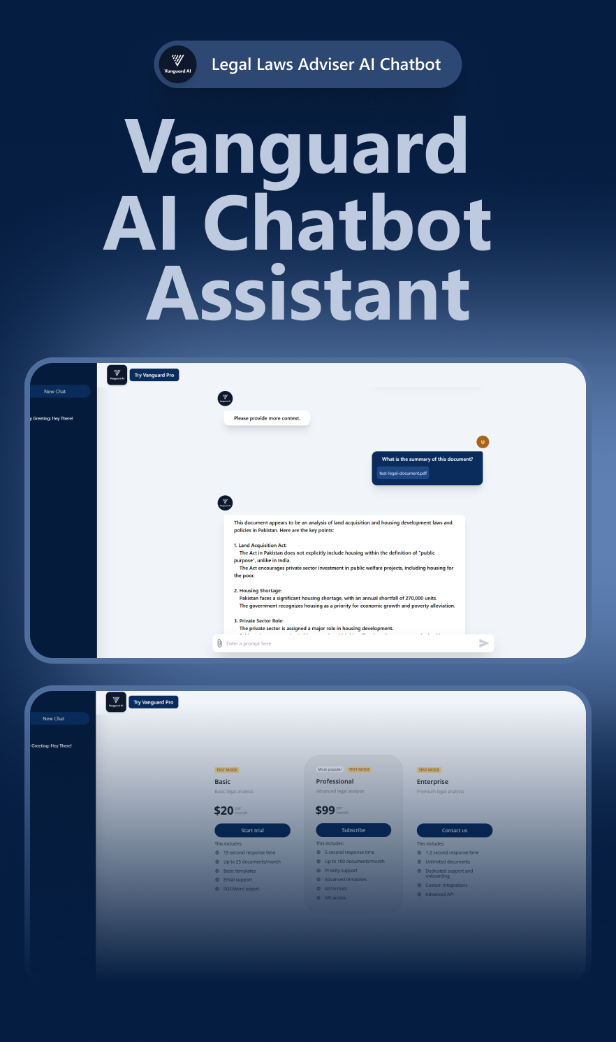Vanguard AI is an intelligent legal assistant that analyzes uploaded documents, extracts key information, and delivers clear, accessible legal guidance using advanced NLP and machine learning. We built their complete platform—including a user-friendly interface for PDF analysis, robust AI models for accurate legal interpretation, and full documentation and training—resulting in 80% faster document reviews, 50% lower consultation costs, and highly reliable legal insights for both professionals and everyday users.